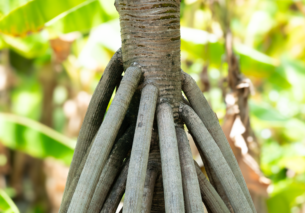 • Prop roots (aloho): Thick, woody roots that extend outward from the base of the trunk, anchoring the tree securely in sandy soil. These roots give the tree a unique stilt-like appearance and allow it to withstand strong winds, waves, and coastal erosion.