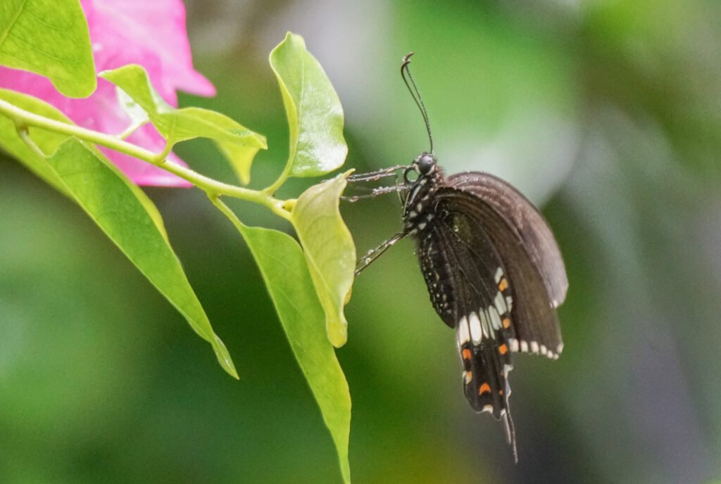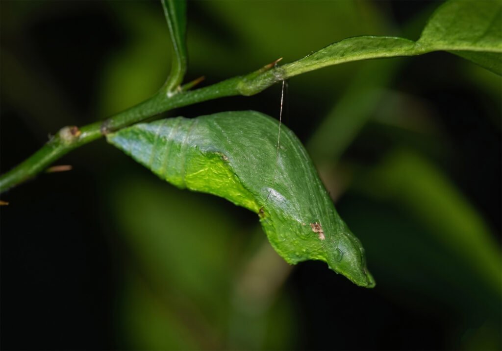 The Common Mormon is not just a garden butterfly—it is a complete transformation story that can be observed closely on a simple lime tree. From a tiny spherical egg to a camouflaged caterpillar, then to a perfectly hidden chrysalis, and finally to a striking swallowtail butterfly, each stage reveals a different adaptation for survival.