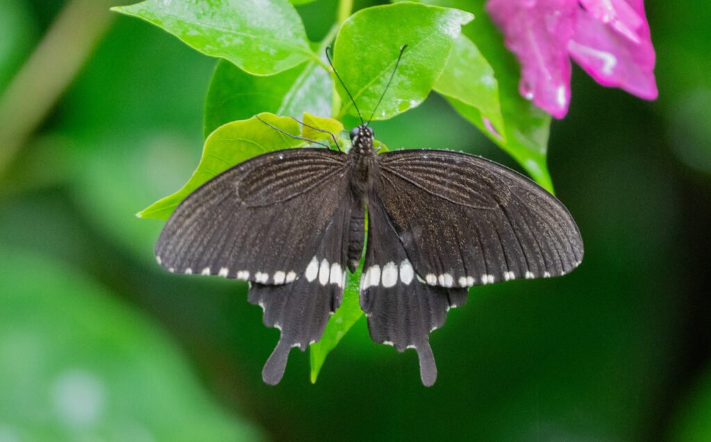 The Common Mormon belongs to the swallowtail family, known for their strong flight and distinctive tail-like extensions on the hindwings. In the Maldives, this species is commonly associated with cultivated citrus plants, especially lime.